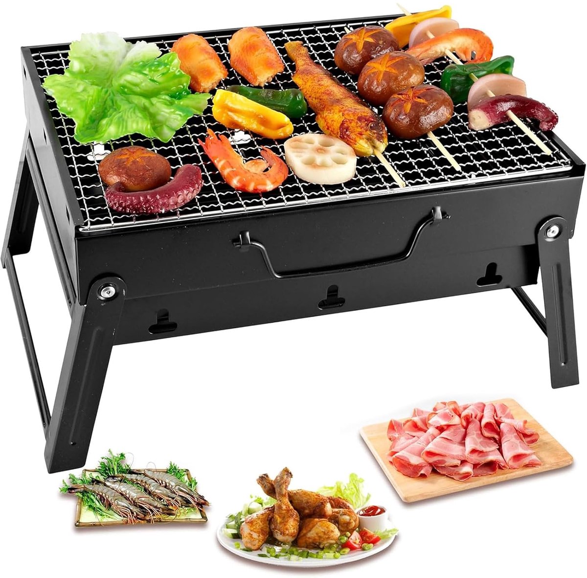 TRANKIELO® – Draagbare Houtskool-Barbecue – Compact & Inklapbaar – Roestvrij Staal – Voor Tuin, Terras, Camping & Reizen – 43x29x23 cm