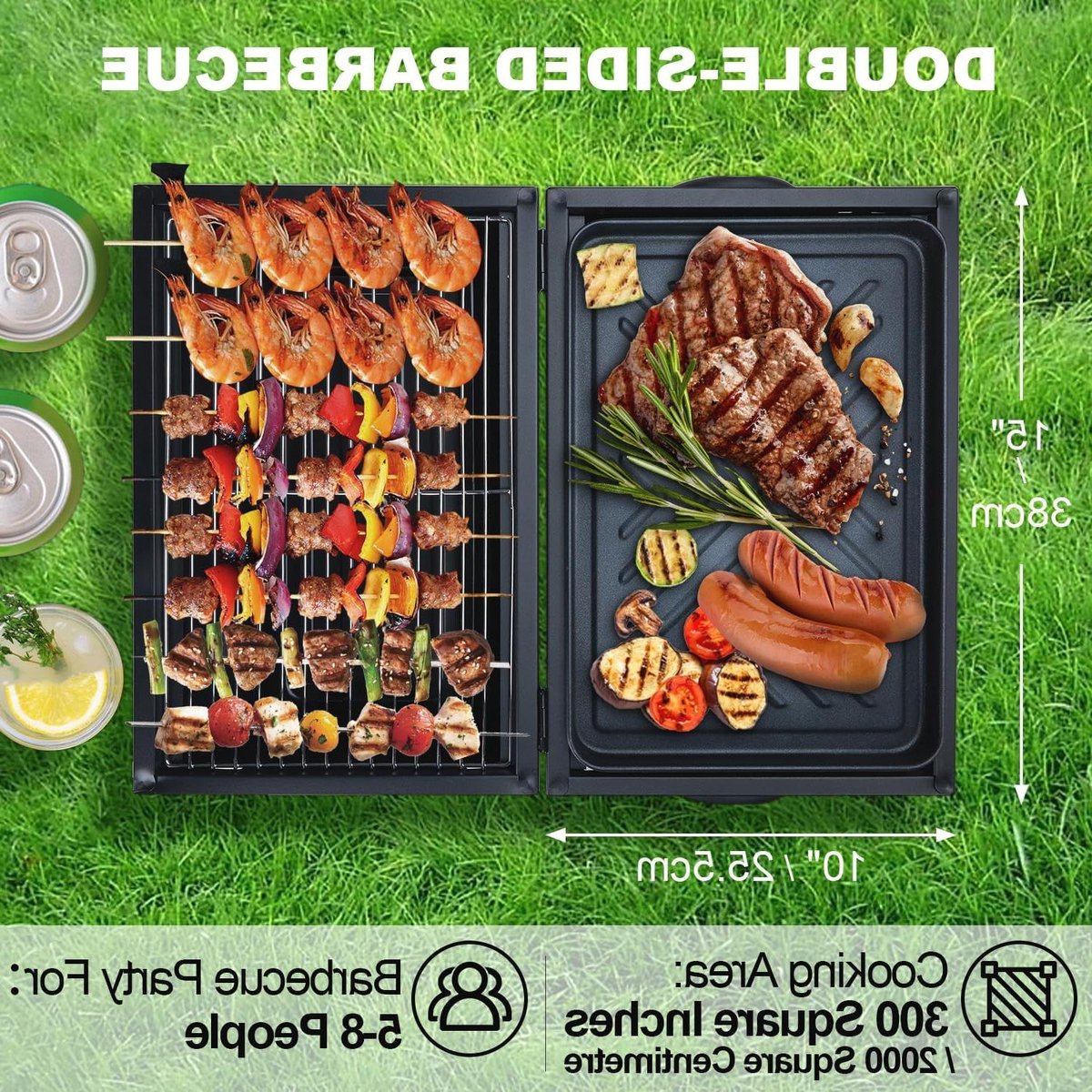Dubbelzijdige houtskoolgrill met rooster en koekenpan voor buiten – draagbare tafelbarbecue voor achtertuin terras barbecue camping – zwart