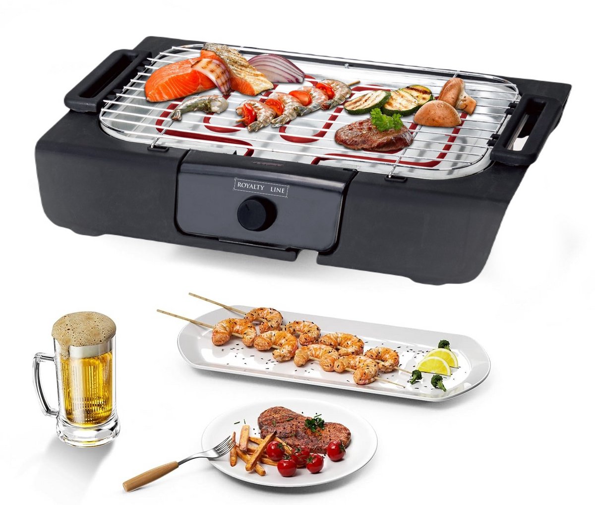 Ben je een barbecue liefhebber en zou je het liefst ook binnen willen barbecuen? Dan biedt de Royalty Line Elektrische Grill de uitkomst! Deze elektrische grill is voorzien van grill en een roestvrijstalen lekbak. Deze losse onderdelen zijn tevens vaatwasbestendig. Bovendien is deze grill rookloos, waardoor je een gezellige barbecue feest binnenshuis kunt geven en ook buiten.