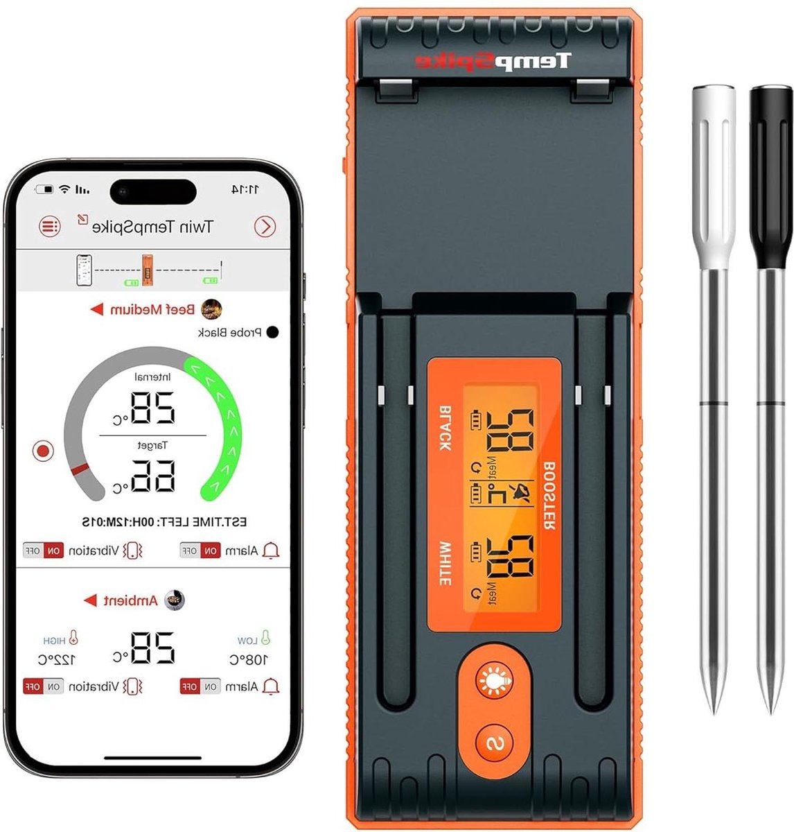 Tempspike Draadloze Vleesthermometer Waarom deze vleesthermometer kopen? Met de Tempspike Draadloze Vleesthermometer heb je de perfecte tool in handen voor het bereiden van heerlijke gerechten. Deze thermometer maakt het mogelijk om de kerntemperatuur van vlees nauwkeurig te meten, waardoor je altijd perfect gegaard vlees op tafel zet.