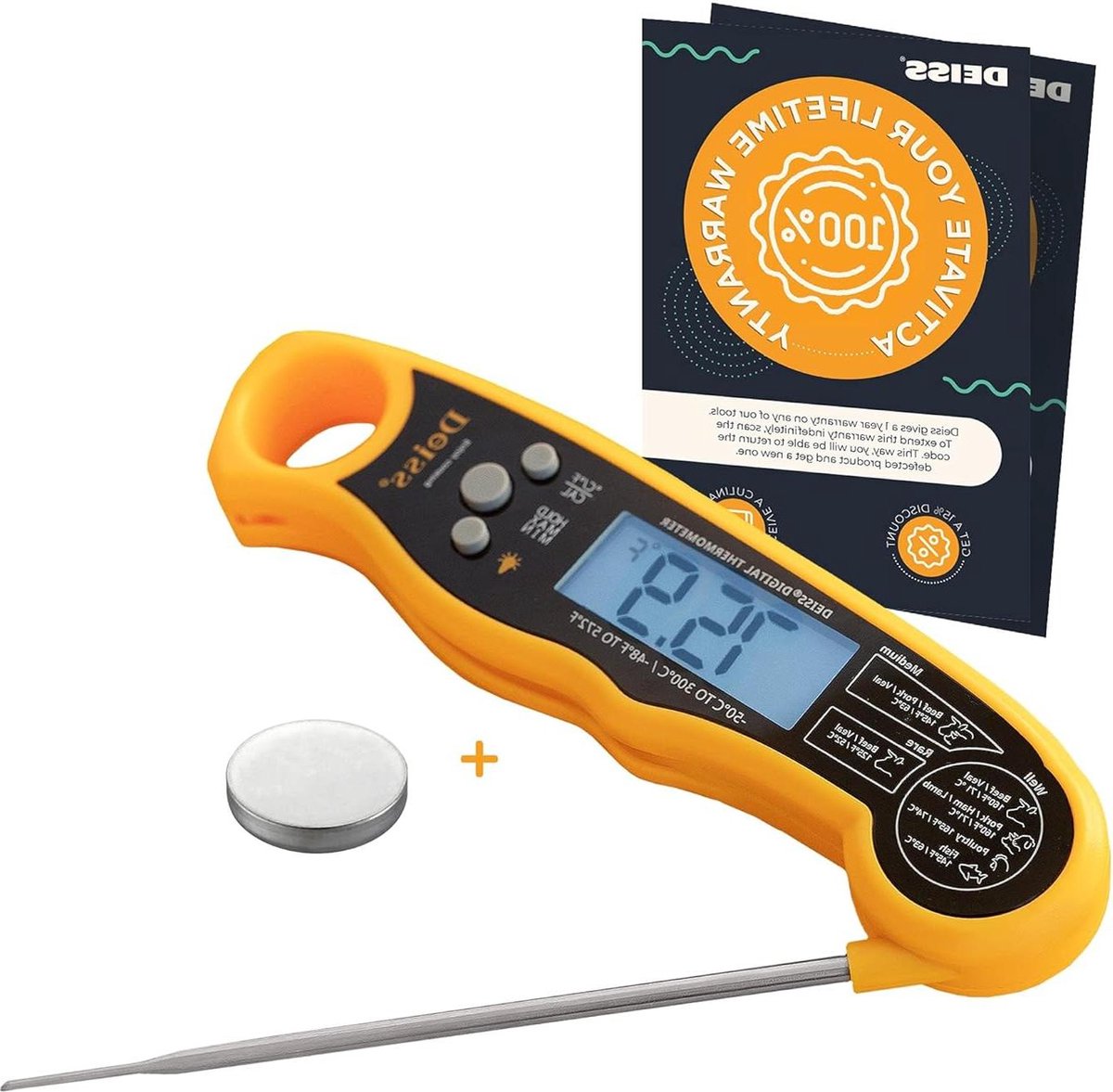 De digitale vleesthermometer is ideaal voor het controleren van de temperatuur van verschillende voedingsmiddelen, waaronder vlees, badwater, melk, koffie en meer. De waterdichte functie en handige opbergmogelijkheden maken dit een onmisbaar keukenhulpmiddel.