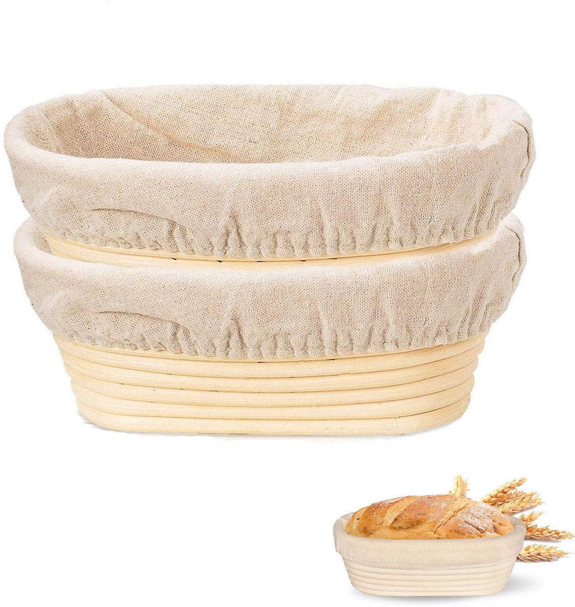 2-stuks Ovale broodrijsmand – zuurdesemrijsmand – handgemaakte rotan kom – bakgereedschap voor thuis – gevoerd – 21*8*14 cm – gemakkelijk schoon te maken – geschikt voor broodbakliefhebbers en professionele broodbakmachines – beige
