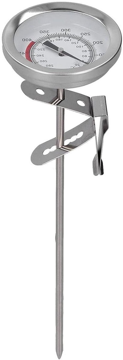 Frituurthermometer voor Hoge Temperaturen - Ideaal voor Friteuse, BBQ en Turkije - RVS Temperatuurmeter voor Melk, Thee, Koffie, Vlees, Olie en Yoghurt - Kookstore.nl