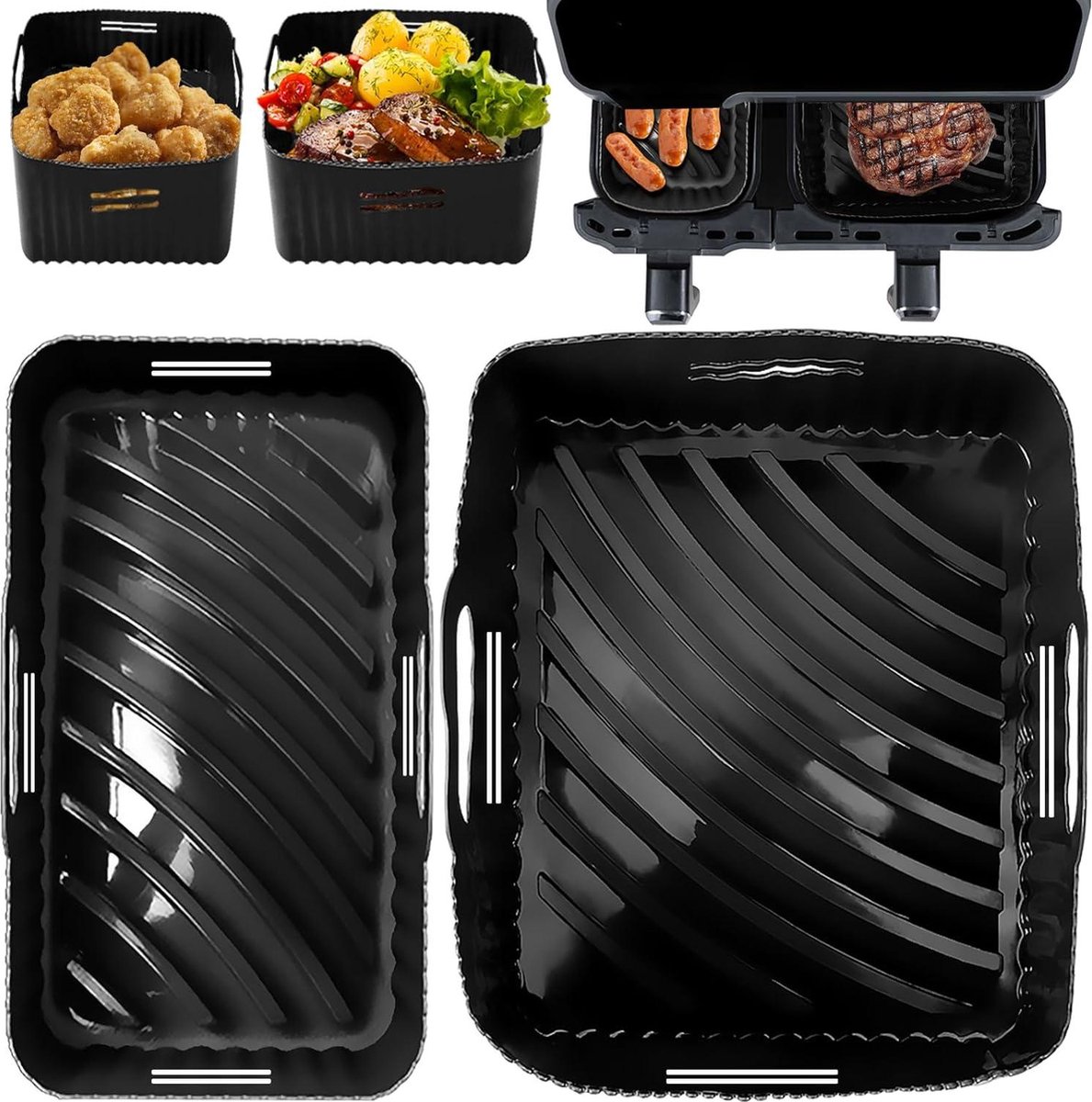 Zorgeloze klantenservice: We streven ernaar om onze klanten kwalitatief hoogwaardige producten en diensten te bieden. Als je na ontvangst van het product vragen hebt, kun je contact met ons opnemen. Wij zullen je binnen 24 uur antwoorden om je probleem op te lossen. Opmerking: dit product is niet geschikt voor airfryers met twee zones waarbij beide laden even groot zijn.