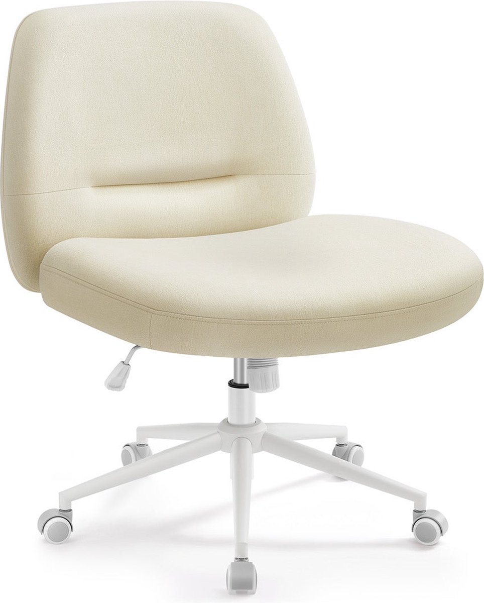Ergonomische Bureaustoel – Brede Zitting – Crème Wit – Stalen Frame – Katoen-Linnen Blend – Verstelbare Hoogte – 70cm x 70cm x 82-90cm