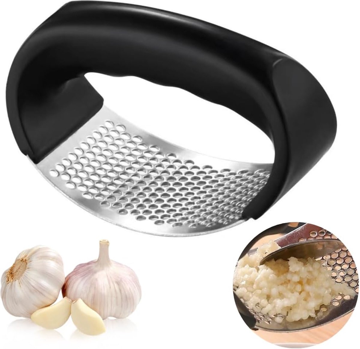 Multifunctioneel en veelzijdig] Onze “roestvrijstalen knoflookpers en hakmolen” is perfect voor het fijnhakken, hakken en snijden van knoflook, fruit, groenten en meer. Met afmetingen van 11,5 x 6,5 x 5 cm en een gewicht van slechts 80 gram is dit keukengerei ideaal voor het hakken van geschilde en ongepelde knoflook, maar ook eieren, aardappelen en andere groenten [Stijlvol en praktisch ontwerp] Deze handmatige knoflookpers is niet alleen functioneel, maar ook esthetisch. Het lichtgewicht en handige ontwerp maakt hem gemakkelijk mee te nemen en te gebruiken. Ideaal voor thuiskoks en professionals, het perfecte cadeau voor Kerstmis [Eenvoudig en snel reinigen] Dankzij het intelligente ontwerp is onze multifunctionele knoflookpers uiterst eenvoudig schoon te maken. Het kan snel onder stromend water of in de vaatwasser worden gewassen, waardoor u tijd en moeite in de keuken bespaart.