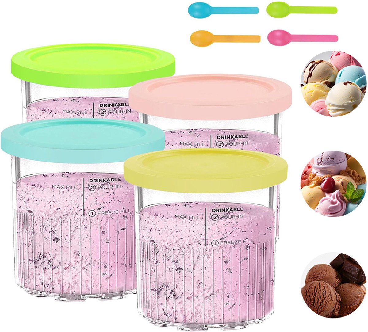 IJsdoos – IJsbeker – IJsmachine-accessoire – Geschikt voor Ninja Creami NC500 NC501 – 4 Stuks