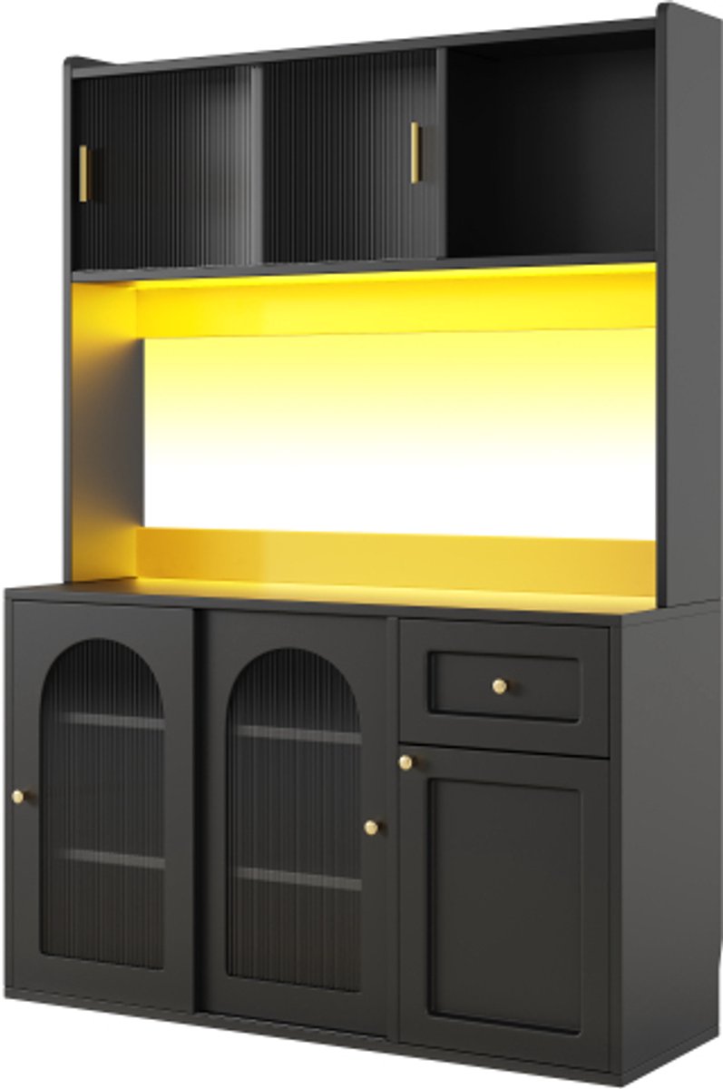 Home Keukenapparatuur Koffiezetapparaat Volautomatisch Keukenkast, hoge kast, vitrinekast, buffetkast met verstelbare planken, eetkamerkast, dressoir met ledverlichting, zwart