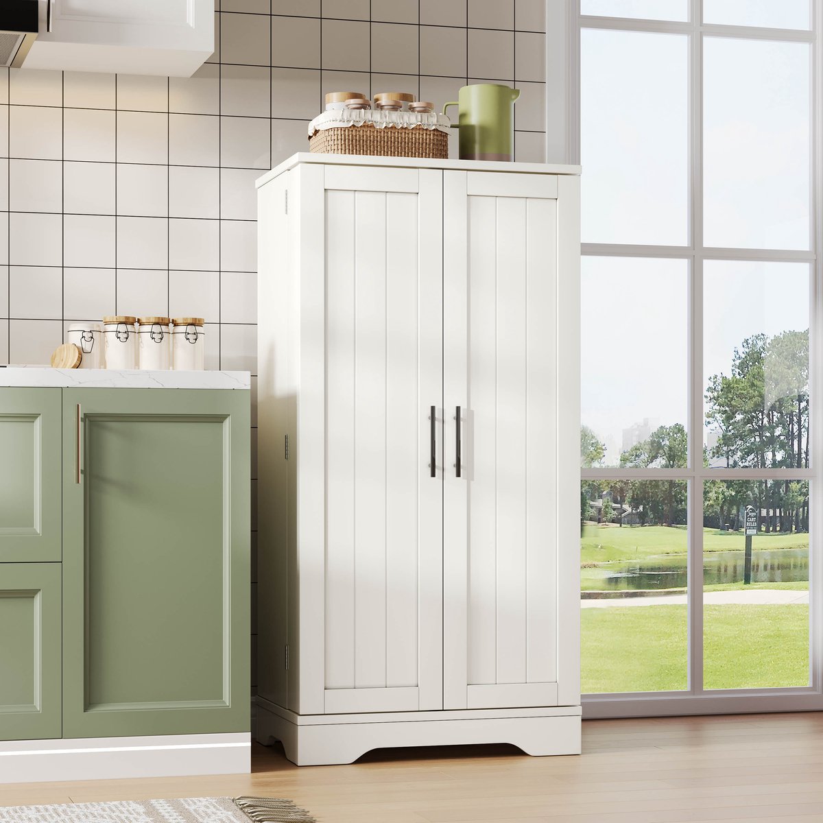Stabiele & Praktische Structuur: De verbrede basis verhoogt het draagvermogen en het anti-kantelmechanisme aan de achterkant biedt extra veiligheid. Het deursluitclip-systeem is stabieler dan een magneetsluiting, beschermt tegen stof en houdt de boel netjes. Het bovenblad is geschikt voor koffiemachines, planten en andere alledaagse voorwerpen, waardoor de ruimte optimaal wordt benut.