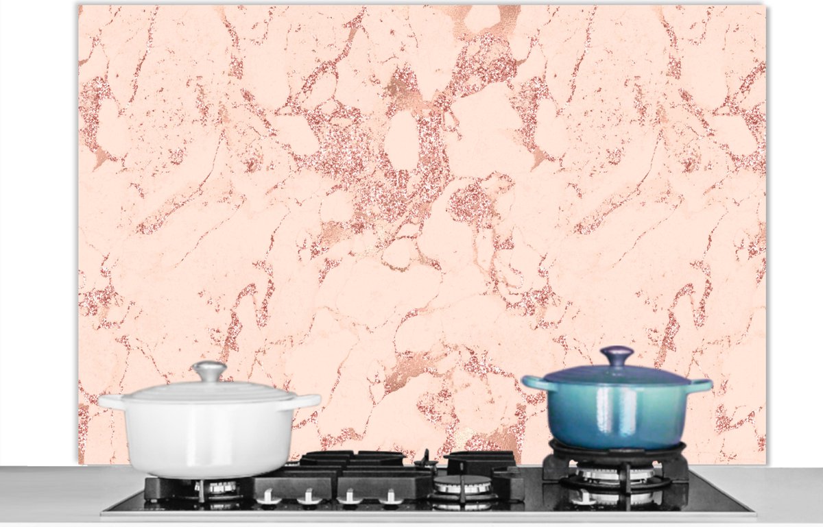 Keukenaccessoires – Marmer – Rose goud – Patronen – Chic – Achterwand keuken Keuken spatschermen van KitchenYeah beschermen jouw kookplaat achterwand tegen spetters en etensresten. De muur van jouw keuken zal dankzij deze spatwand nooit weer vies worden door het gespat van jouw kookplaat of fornuis.