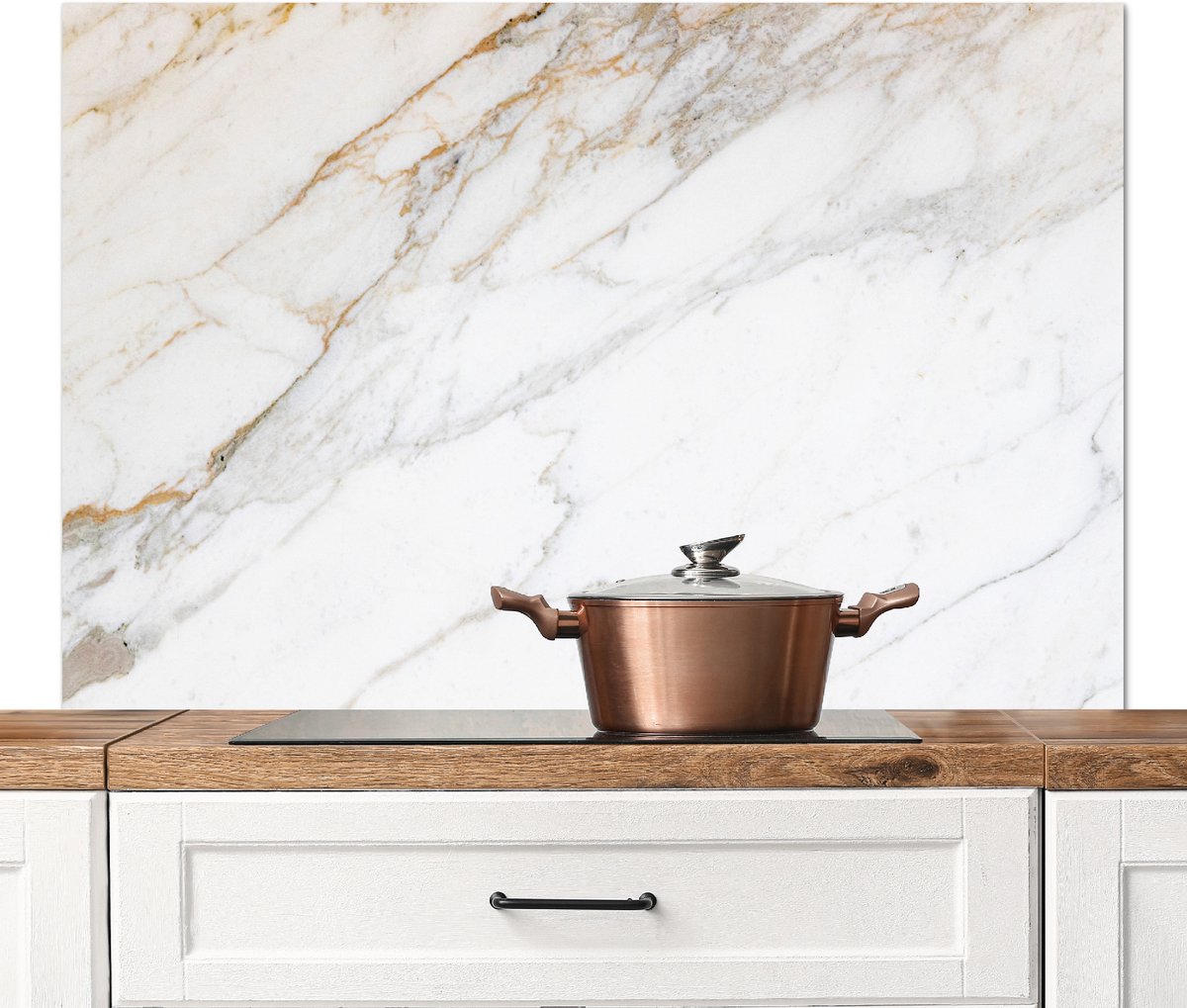 Spatscherm keuken 120x80 cm - Kookplaat achterwand Marmer - Steen - Wit - Goud - Marmerlook - Steen - Luxe - Muurbeschermer - Spatwand fornuis - Hoogwaardig aluminium
