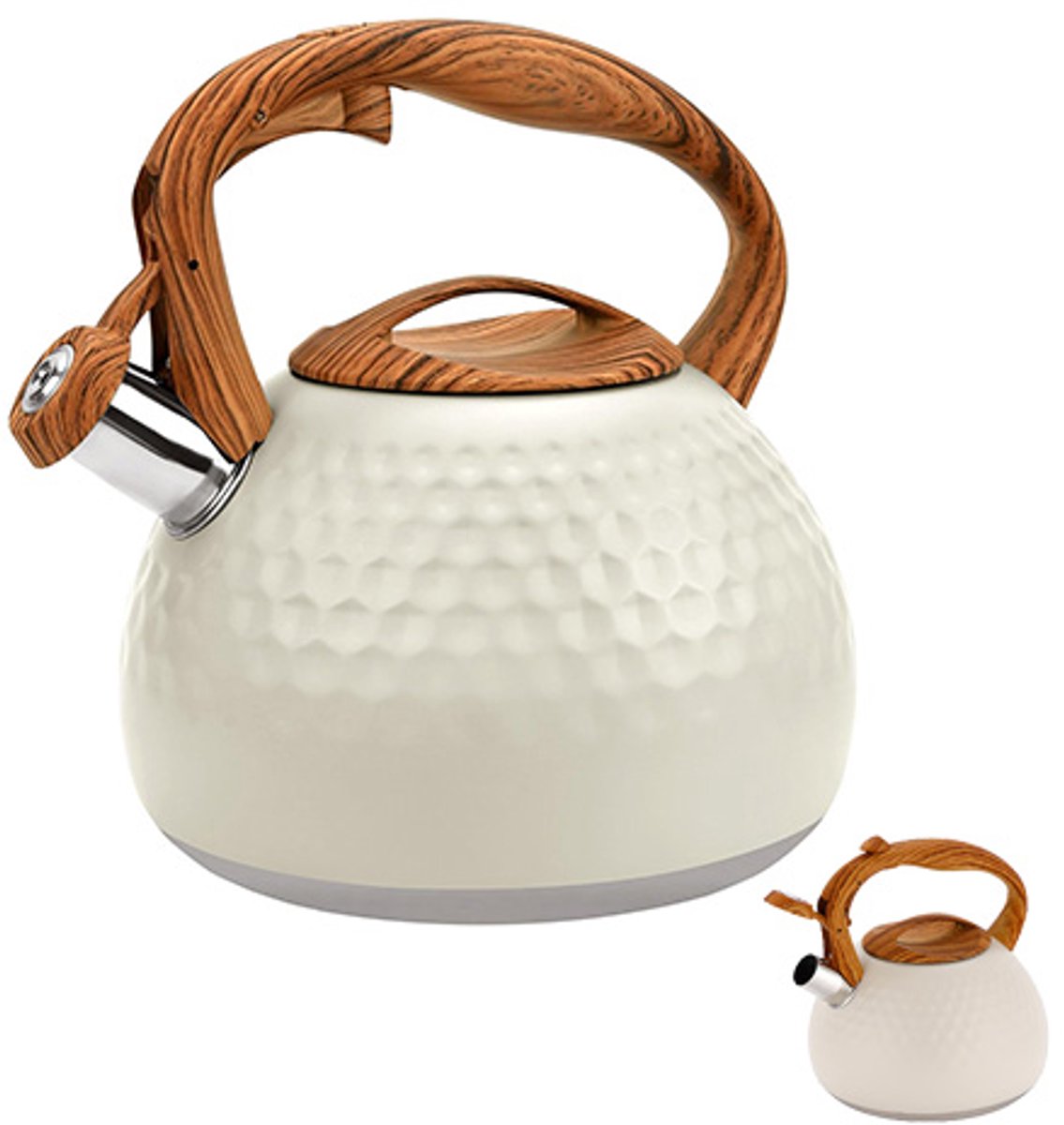 Theepot met grote inhoud – 3L roestvrijstalen theepot – Inductiekookketel – Fluitende waterkoker – Handvat met houtnerf en anti-verbrandingsfunctie – Geschikt voor kokend water, koffie of melk – Gebroken wit