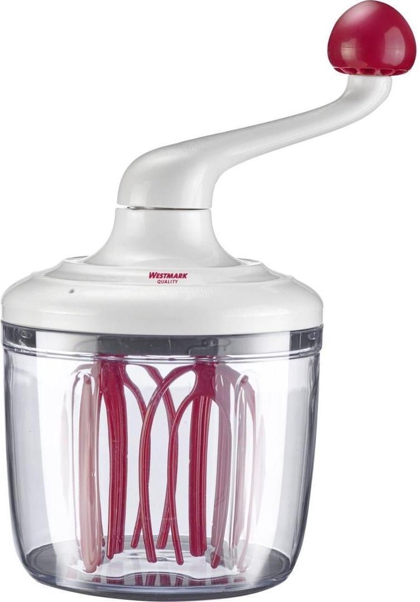 Westmark handmixer Met deze handmixer van Westmark klop je eieren, beslag, slagroom en meer in een handomdraai. De handmixer draait licht en soepel, en de onderzijde is antislip zodat je comfortabel werkt. De schaal heeft een inhoud van 1 liter. Na gebruik mag de handmixer, die is gemaakt van kunststof, in de vaatwasmachine.
