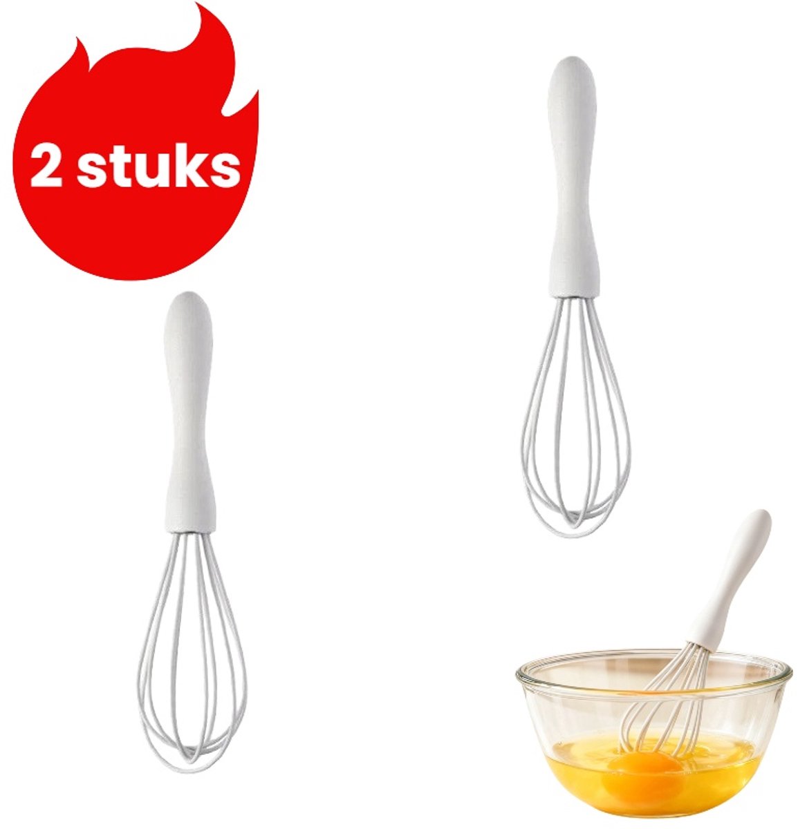 2-delige handmatige eierklopper – Bakgereedschap voor thuis – Keukenmixer – Bakgereedschap – Wit