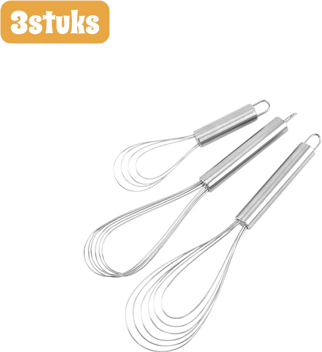3 stuks – RVS – Garde met Dunne Staven – Zwaar uitgevoerde Keukenmixer – Professioneel Bakgerei – voor Beslag en Sauzen – zilver