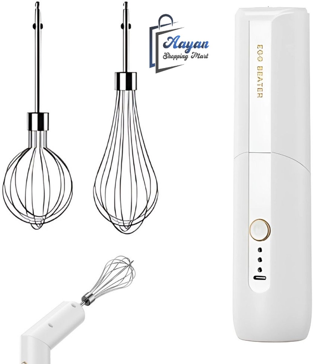 Elektrische Garde wit Draadloos USB Oplaadbaar Keukenmixer voor Eieren en Room – Elektrische mixer – elektrische eierklopper – elektrische blender – 78687