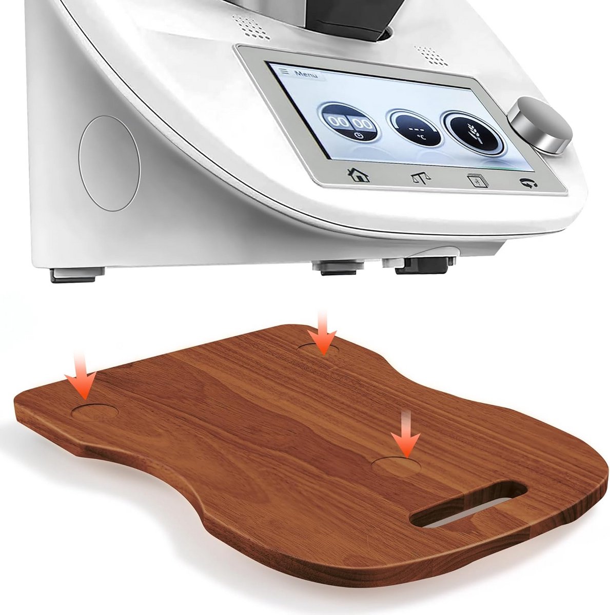 Verbeter het gebruiksgemak van uw keukenmachine met deze stevige, houten schuifplank, speciaal ontworpen voor de keukenmachines TM5 en TM6. Vervaardigd uit duurzaam, massief rubberhout met een natuurlijke en aantrekkelijke uitstraling. Met afmetingen van ongeveer 39,5 x 28,5 x 2,8 cm biedt deze plank een stabiele ondergrond. **Belangrijkste Kenmerken:** * **Eenvoudige Mobiliteit:** Uitgerust met twee universele wielen, waardoor u uw zware keukenmachine moeiteloos kunt verschuiven voor schoonmaak of het bereiken van moeilijk bereikbare plekken. * **Duurzaam en Stevig:** Gemaakt van hoogwaardig rubberhout dat een sterke, gelijkmatige textuur biedt en ontworpen is voor een lange levensduur bij droog en geventileerd gebruik. * **Gebruiksvriendelijk Ontwerp:** Het handvat is meermaals gepolijst voor een gladde afwerking die krassen op uw handen voorkomt. De zorgvuldig afgewerkte gebogen zijhoeken voorkomen stoten. * **Oppervlaktebescherming:** Minimaliseert wrijving en geluid tussen de bodem van de keukenmachine en uw aanrecht, waardoor zowel uw meubels als de machine beschermd blijven tegen beschadiging en corrosie.