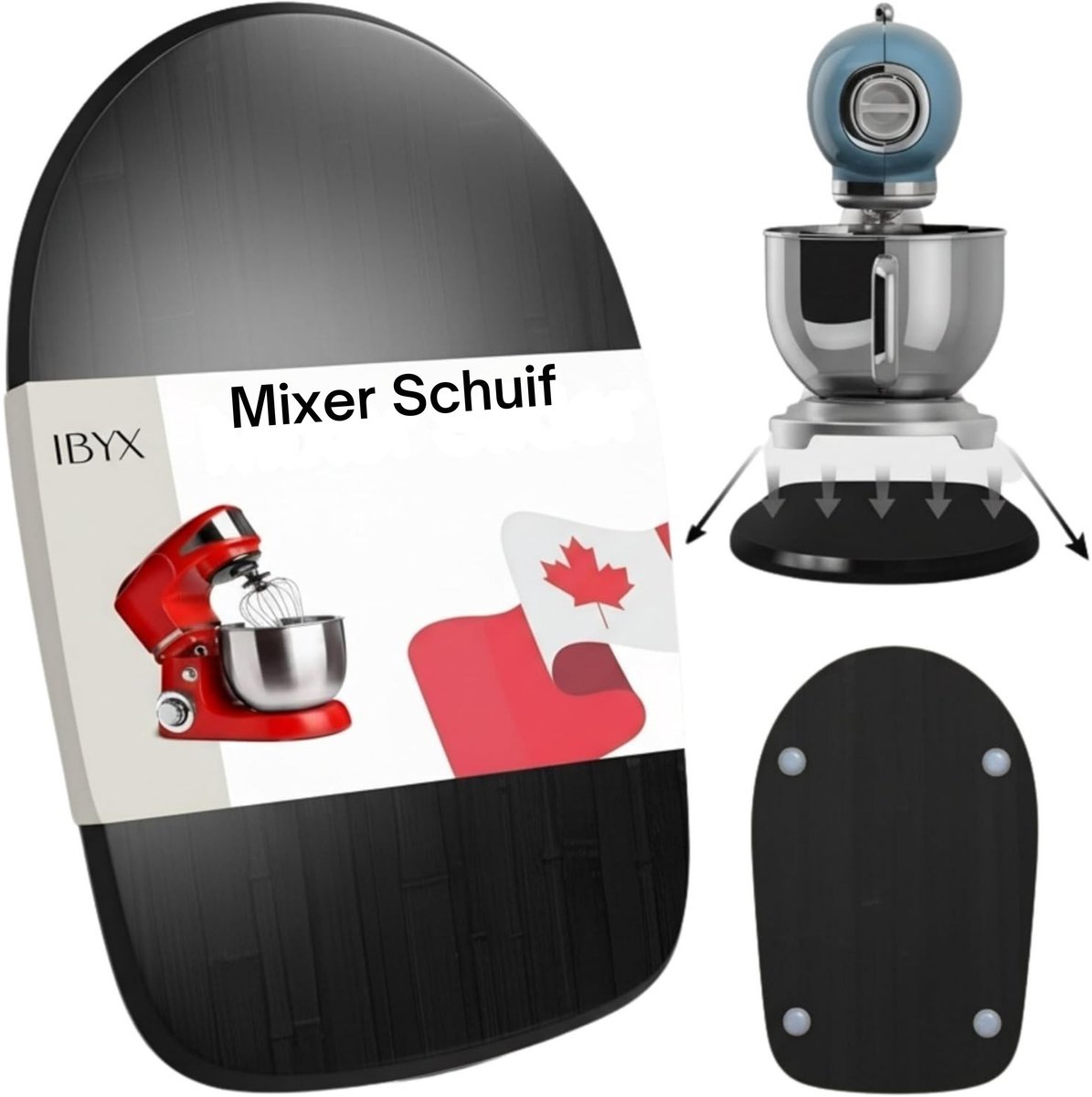 Home Keukenapparatuur Mixen & Bereiden Keukenmixer Ibyx Bamboe Schuifplank Zwart – Onderzetter voor Keukenmachine (4,3L – 4,8L) – Keuken Organizer met Wieltjes