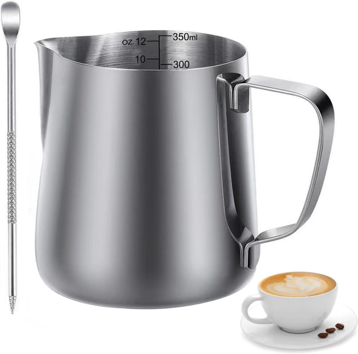 Inovra ® 350 ml melkopschuimkannetje Latte Cup, 304 roestvrij staal, handzame opschuimkan, met maatstreep en Latte Art-pen, voor espresso, melkopschuimer, koffie, Latte Art, koffieliefhebber