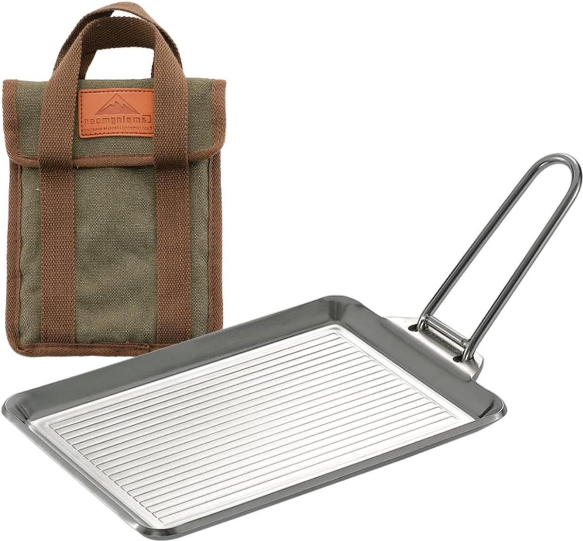 Productspecificaties: – Materiaal: 304 roestvrij staal – Afmetingen: L 8,3″ x B 5,5″ x T 0,16″ – Gewicht: ca. 930 g – Inclusief opbergtas – Afneembaar handvat