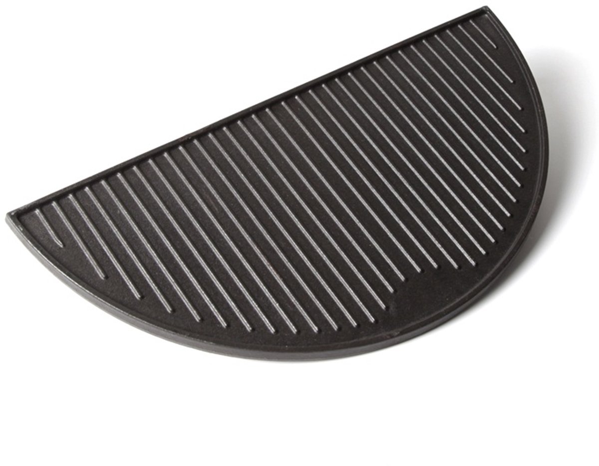 De voordelen van een gietijzeren barbecue grillplaat: Deze half ronde grillplaat is een mooie toevoeging aan je Kamado. Met een gladde kant en een kant voorzien van grillstrepen is het geweldig voor het bakken van zowel stukken vlees, vis als groenten. Het gietijzer houdt de warmte goed vast en kan tegen zeer hoge temperaturen. Een ideaal accessoire voor de Kamado.