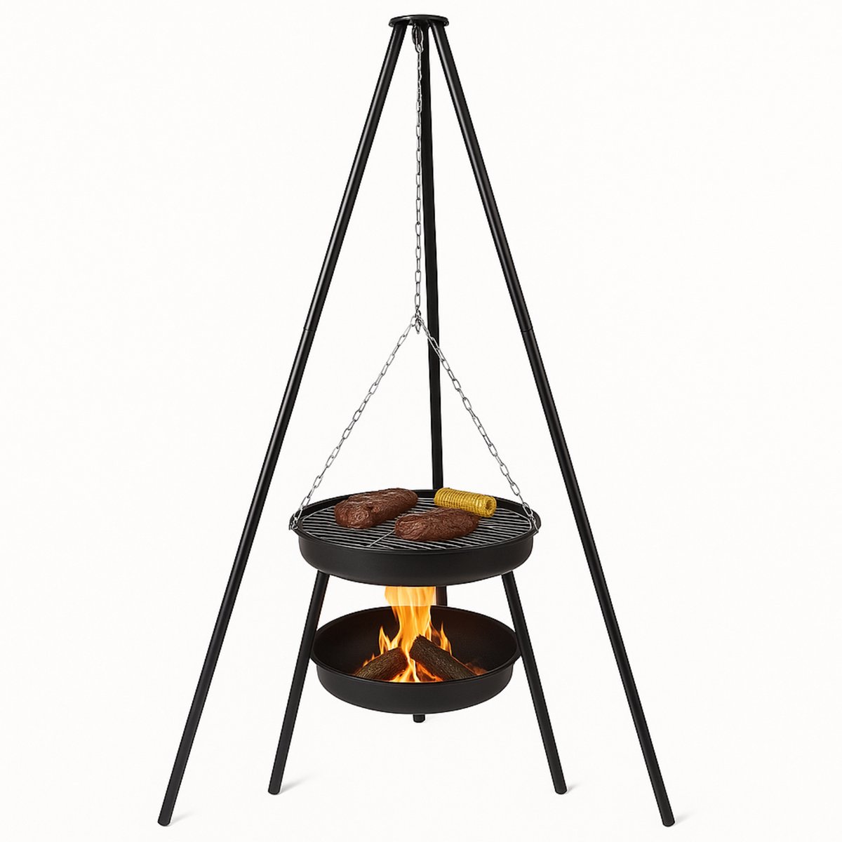 Lomera Vuurschaal Hangend – met Grillrooster – Driepoot Model – Grillplaat Inbegrepen met Ketting – Barbecue Functie – Staal – Buiten Koken – Vuurplaats met Grill – Tuin en Terras – Tuinaccessoires