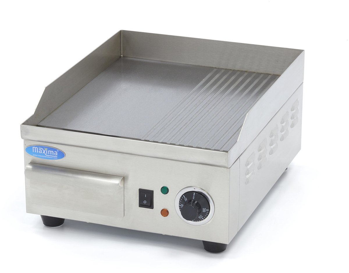 Wil je de lekkerste vlees- en visgerechten bereiden dan is een grillplaat onmisbaar in de horecakeuken. Bij het grillen blijven smaak en vitamines langer behouden en gerechten zijn snel gaar. Het voordeel van deze elektrische grillplaat is dat hij snel op temperatuur komt en ook weer snel afkoelt. De grillplaat is voorzien van een gladde en gegroefde bakplaat van 8 mm staal met een satijnen afwerking. Dat maakt dit horeca-apparaat zeer geschikt voor een hoge productie aan gerechten en intensief gebruik. Dankzij de gelijkmatige warmteverdeling wordt voedsel gelijkmatig gegaard.
