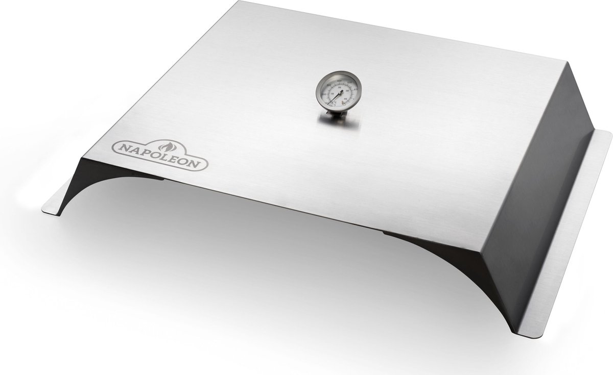 Deze ‘ovenbak’ dekt de grill af en heeft een opening waardoor de pizza naar binnen en buiten kan worden geschoven