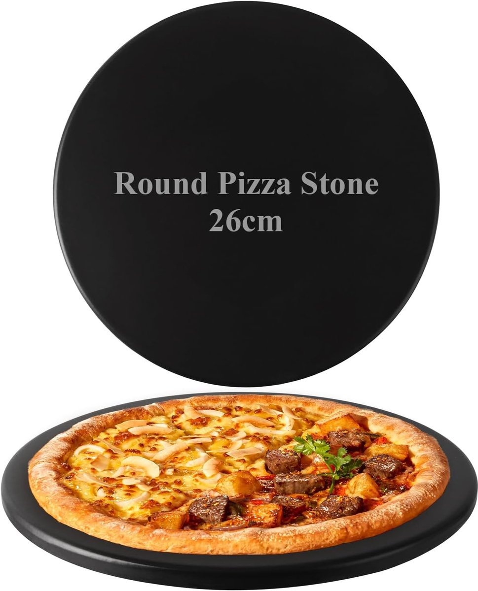 Pizza Stone – Ronde, Compacte Afmeting (Diameter 26 cm) Ontdek de perfecte manier om thuis heerlijke pizza’s te bereiden met onze ronde pizza stone. Met een diameter van 26 cm is deze steen ideaal voor kleine pizza’s en flambées. Geniet van een knapperige bodem aan de buitenkant en een zachte, smaakvolle binnenkant. Dankzij de hoogwaardige, vuurvaste keramische samenstelling zorgt deze pizza stone voor een gelijkmatige warmteverdeling, wat resulteert in een authentieke steenovenervaring in uw eigen keuken.