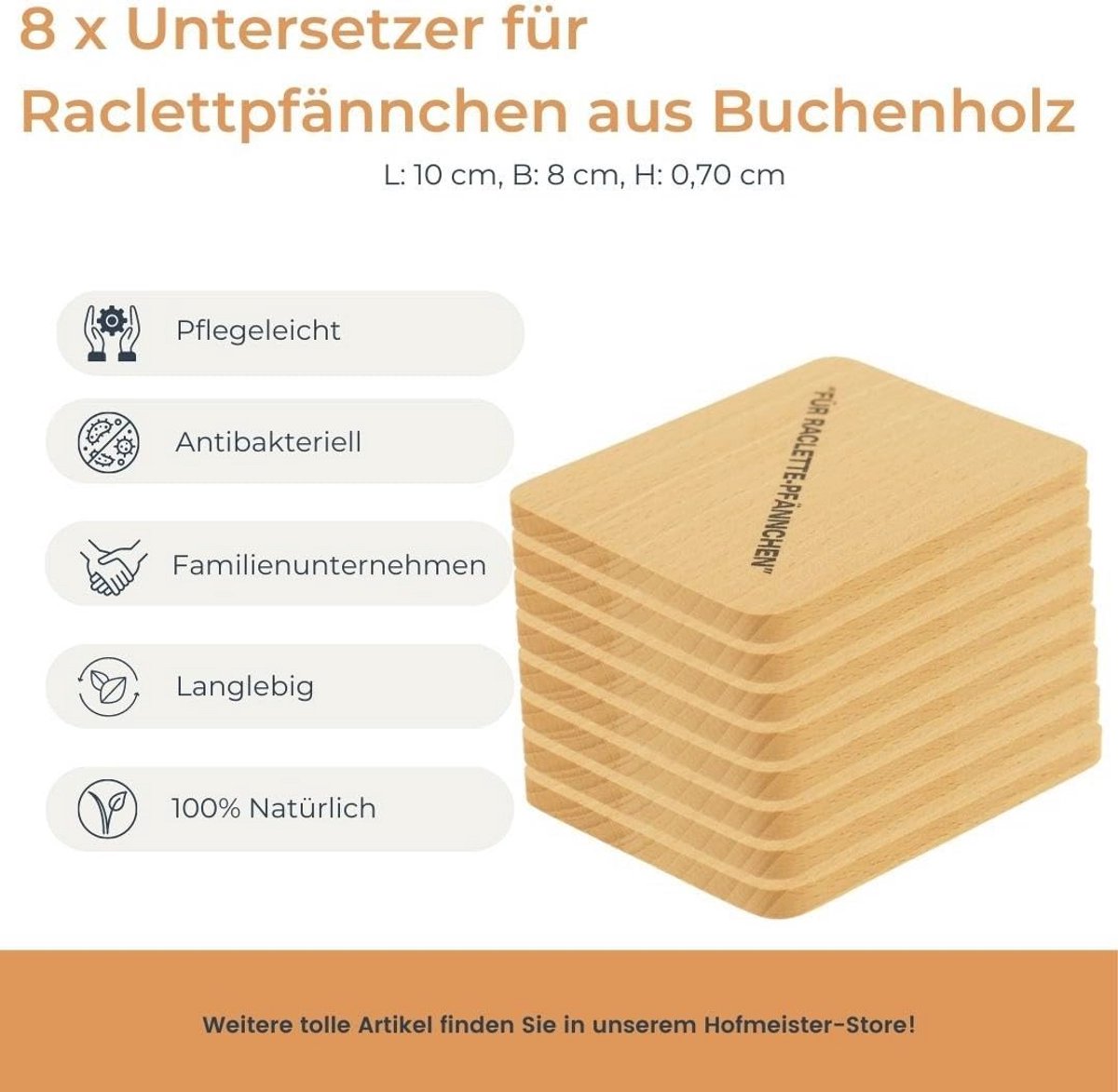 Houten Raclette Onderzetters voor Pannen - Set van 8 - Bescherm Tafel tegen Brandvlekken - Kookstore.nl
