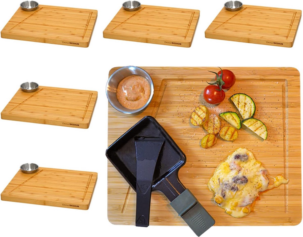 Raclette Borden Set Hout voor 6 Personen – Bamboe Plankjes en Dipschaal
