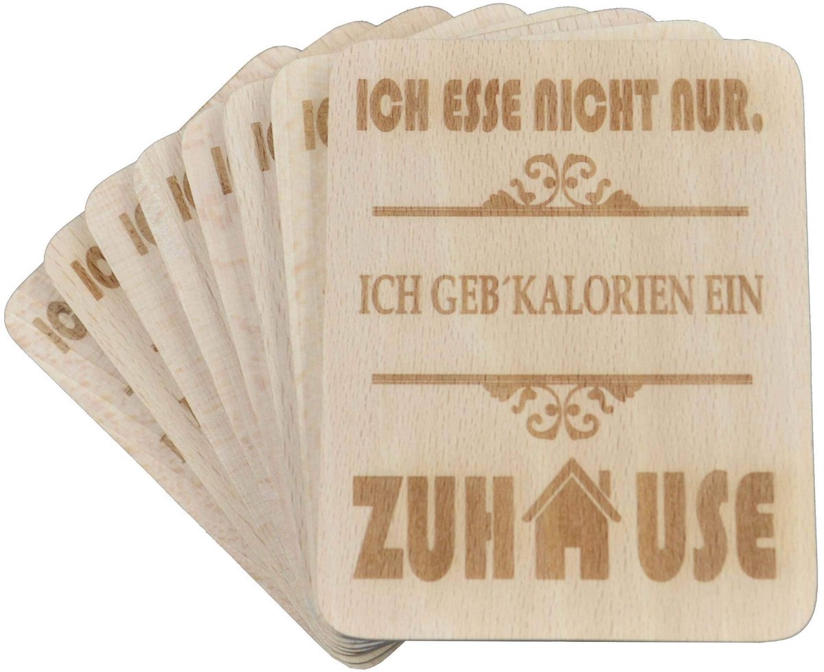 8 onderzetters voor raclettepannetjes met gravering: “Ik eet niet zomaar. Ik geef calorieën een thuis.” Afmetingen: (L) 100 x (B) 80 x (H) 7 mm – gemaakt van lokaal FSC-gecertificeerd beukenhout met lasergravure “Made in Germany” Beschermt uw tafel of tafelkleed tegen brandwonden door hete raclettepannen Als cadeau-idee voor Kerstmis, een verjaardag of gewoon als klein souvenir voor het volgende raclette-avondje met vrienden.