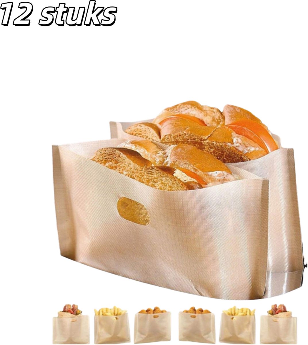 12 stuks – Bakmat – Antiaanbaklaag – Herbruikbaar – Hittebestendig – Gemakkelijk schoon te maken – Geschikt voor tosti’s – 17 x 19 cm – Bruin