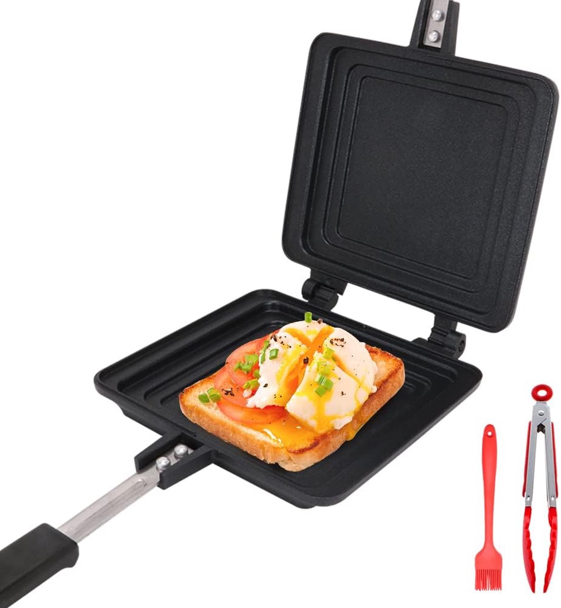 Dubbelzijdige toastpan met hittebestendig handvat Anti-aanbak tortilla's Koekenpan Camping Broodrooster Tosti-ijzer voor Ontbijt Kamperen Buiten - Kookstore.nl