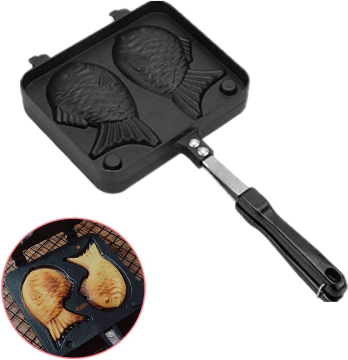 TheLau – Wafelijzer Pan voor Vis Taart – Anti-aanbak Bakvormen – Aluminium Vorm – Dubbele Vis Cake Bakken – Roestvrij stalen Dessert Koekenpan