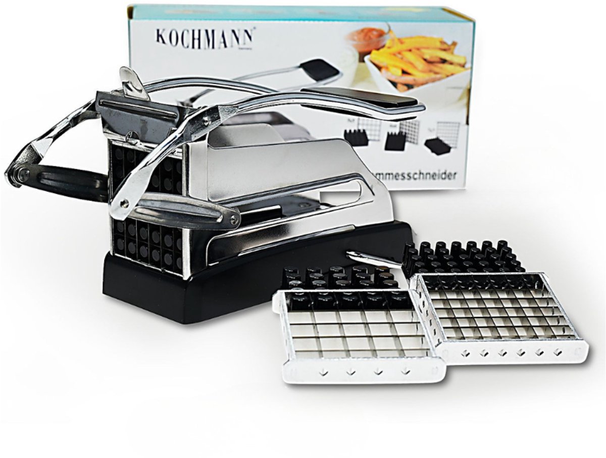 Kochmann – frietsnijder 3 persplaten – Professioneel – RVS patatsnijder voor keuken & horeca- dikke dunne golf friet – Patatsnijder voor thuis