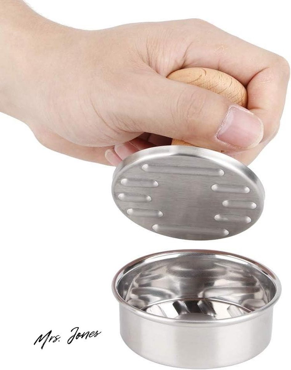 Mrs. Jones Hamburger Pers Patty Maker - Mini Burger Pers Rvs - Houten Handvat - Kinderen 7.8cm 3.1inch . - Kookstore.nl