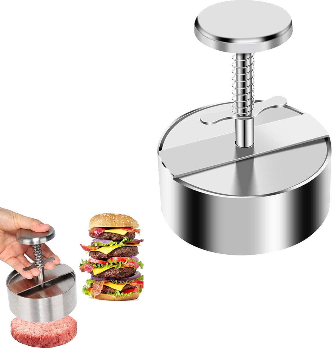 Vleespers - Burger Vleespers - Hamburger Pers - Hamburger Pers - Hamburgervormer - Keuken Voedsel Schimmel - Ronde Hamburger - Zelf Hamburgers Maken - Bbq Accessoires - Voor Heerlijke Hamburgers, Pasteitjes, Bbq, Hamburgerpers - Zilver - RVS