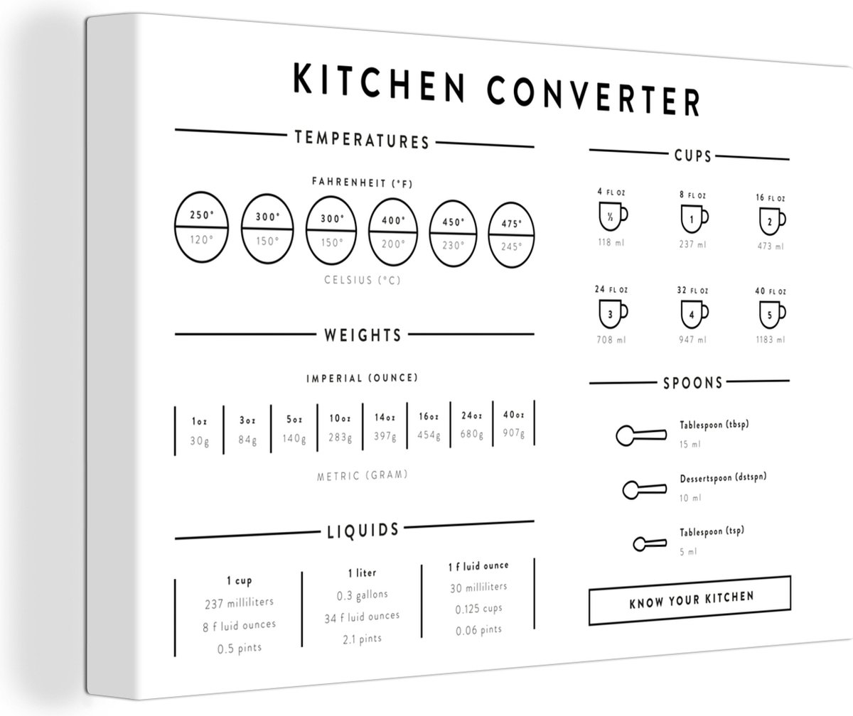 Canvas schilderij 180×120 cm – Wanddecoratie Keuken – Koken – Handleiding – Maatbeker – Maatlepel – Muurdecoratie woonkamer – Slaapkamer decoratie – Kamer accessoires – Schilderijen