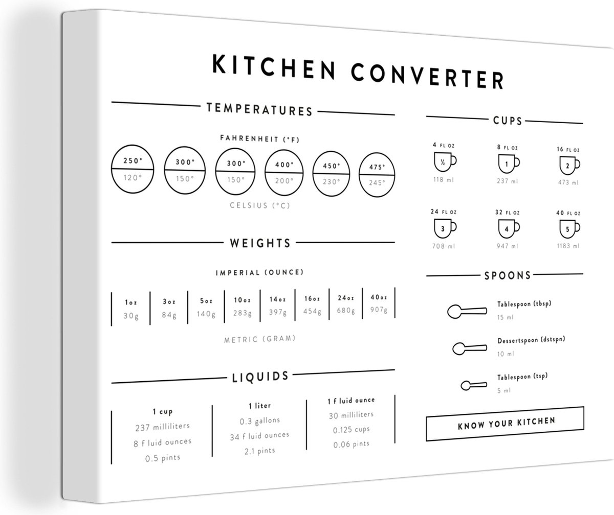 Home Keukengerei Maatbeker Canvas Schilderij Keuken – Koken – Handleiding – Maatbeker – Maatlepel – 90×60 cm – Wanddecoratie