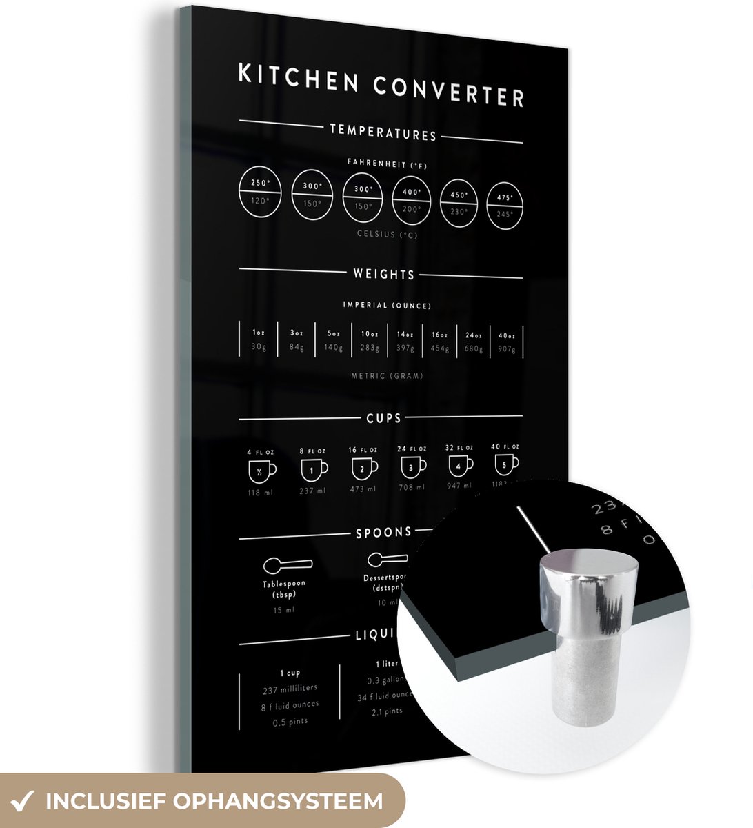 MuchoWow® Glasschilderij 20×30 cm – Schilderij acrylglas – Handleiding – Gewichten – Keuken – Koken – Maatbeker – Foto op glas – Schilderijen