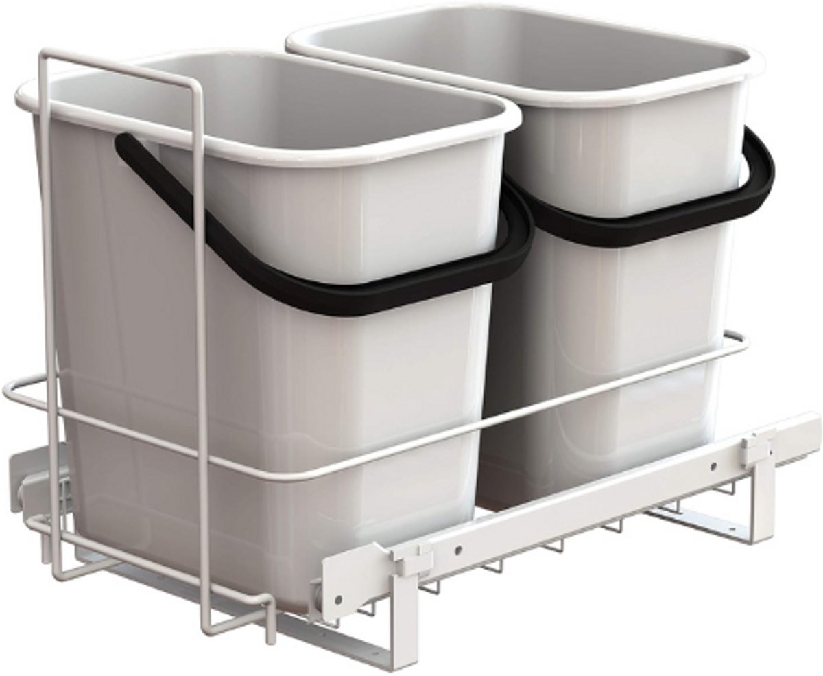 Uitschuifbare Keukenafvalbak Met 2 Emmers – 11.5L Afvalscheidingsbak – Inbouw Prullenbak Voor Keukenkast – Ruimtebesparende Afvalemmer – Wit