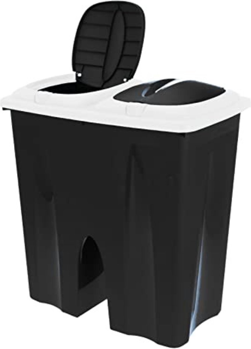 Dubbele afvalbak met 2 aparte deksels – inhoud: 50 liter (2 x 25 l)