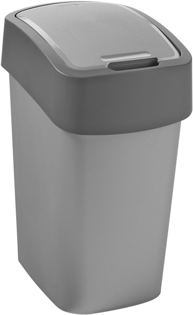 Afvalemmer 10L met Flipdeksel – Zilver/Donkergijs – 18,9 x 23,5 x 35 cm