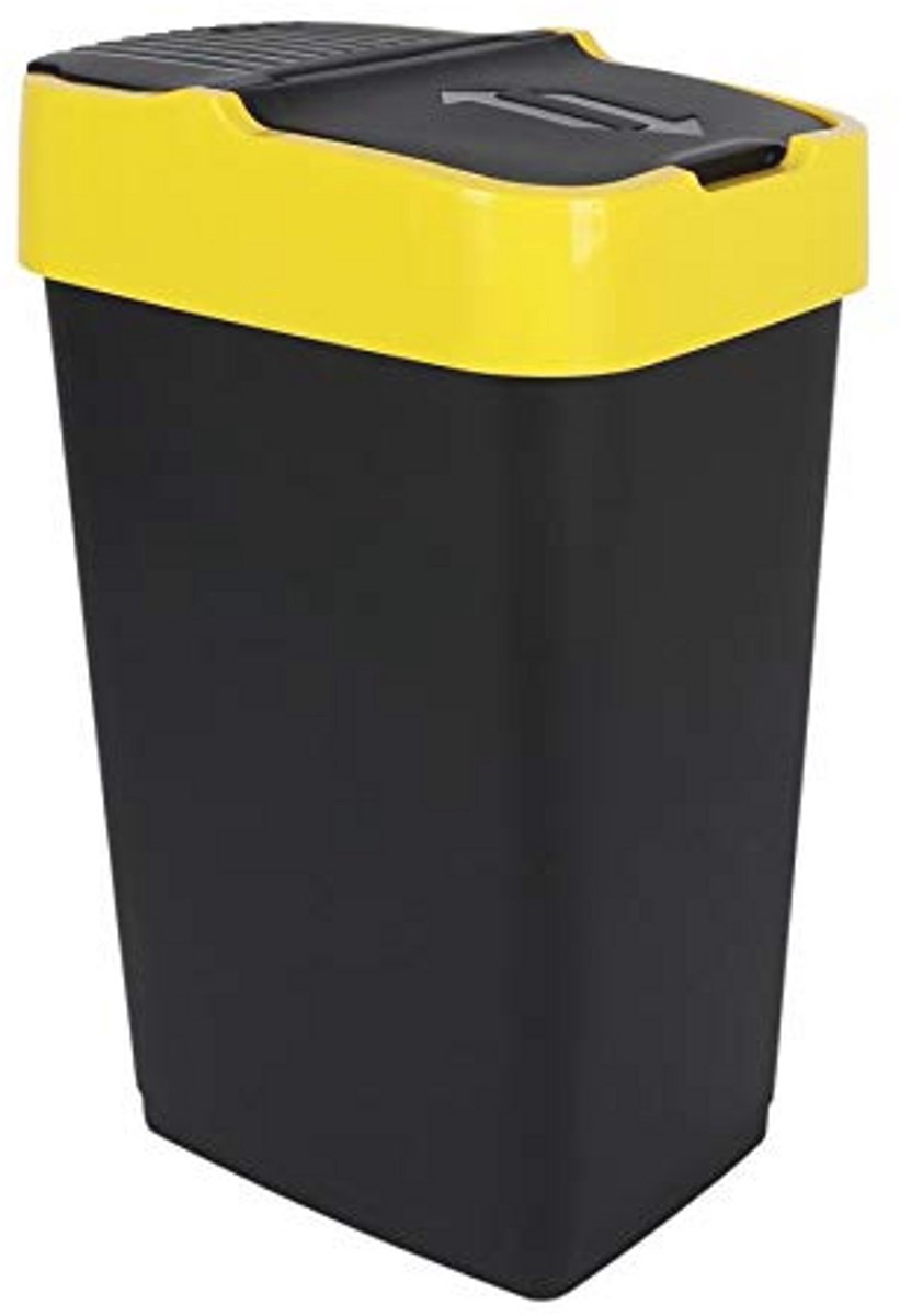 Deze praktische afvalemmer met een inhoud van 35 liter is perfect voor elk huishouden. Met zijn zwenkdeksel en elegante zwarte body gecombineerd met een deksel in een van drie vrolijke kleuren (geel groen of blauw) is deze vuilnisemmer zowel stijlvol als functioneel. De afmetingen van de afvalemmer zijn ongeveer 51 cm hoog 33 cm breed en 26 cm diep. Gemaakt van duurzaam kunststof is deze afvalcontainer ideaal voor het scheiden van afval. Let op: de kleur van het deksel is afhankelijk van beschikbaarheid en kan niet worden gekozen. Geschikt voor diverse ruimtes zoals de keuken badkamer of kantoor.