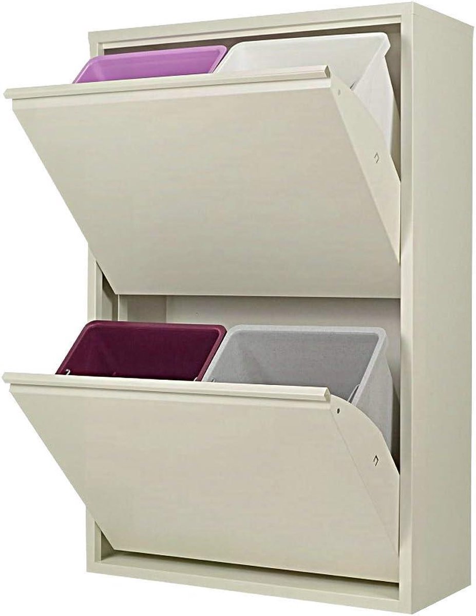 Afvalemmer voor afvalscheiding wit-metalen kast ruimtebesparing binnen buiten – EcoPatty 2 vakken 4 emmers 60 liter vuilnisbak 60 liter