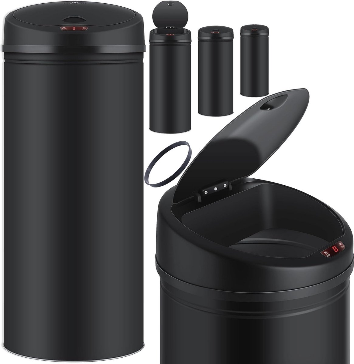 Deze automatische sensor vuilnisemmer van 30 liter maakt afvalverwerking eenvoudiger dan ooit. Dankzij de geavanceerde sensortechnologie opent en sluit het deksel automatisch waardoor je handen vrij blijven van het openen van de afvalemmer. De vuilnisemmer is gemaakt van geborsteld roestvrij staal en heeft een stijlvolle zwarte afwerking waardoor hij een aanvulling is op elke keuken of badkamer. De inbegrepen klemring houdt de vuilniszak op zijn plaats en de LED-functieweergave geeft aan wanneer de vuilnisemmer in gebruik is. Met een hoogte van 51 cm (gesloten) en een diameter van 36 cm is deze afvalemmer compact en functioneel. Perfect voor diegenen die een hygiënische en moderne oplossing voor hun afvalverwerking zoeken.