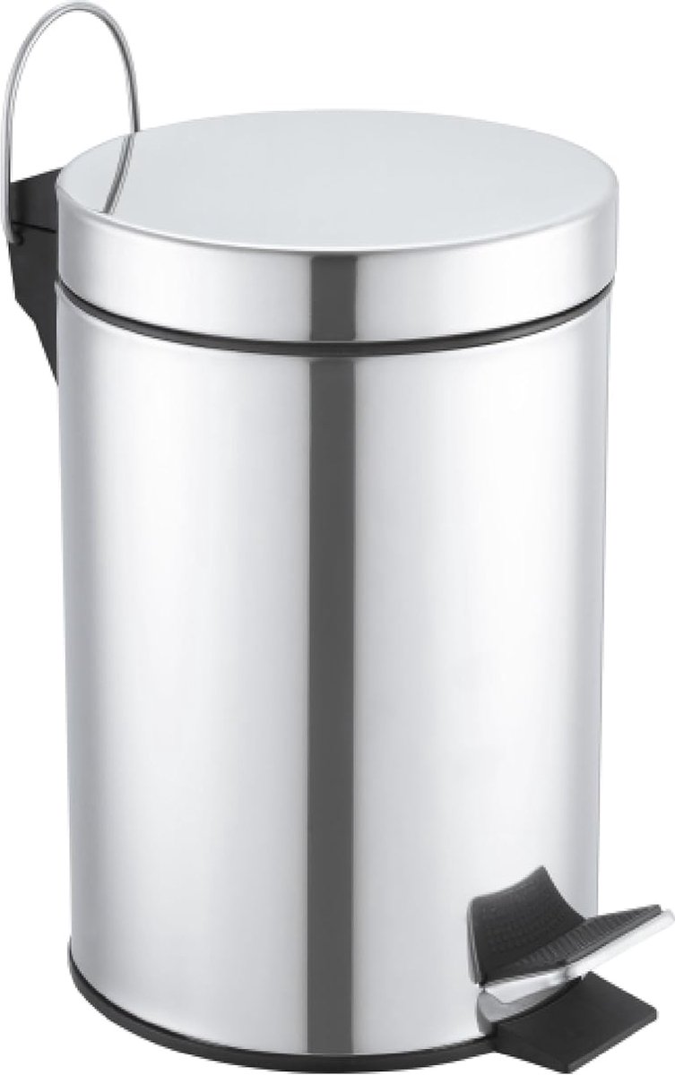 badkamer-afvalemmer - 3L - rond - staal - grijs - chroom uitvoering - cosmetica-emmer - cosmetica pedaalemmer