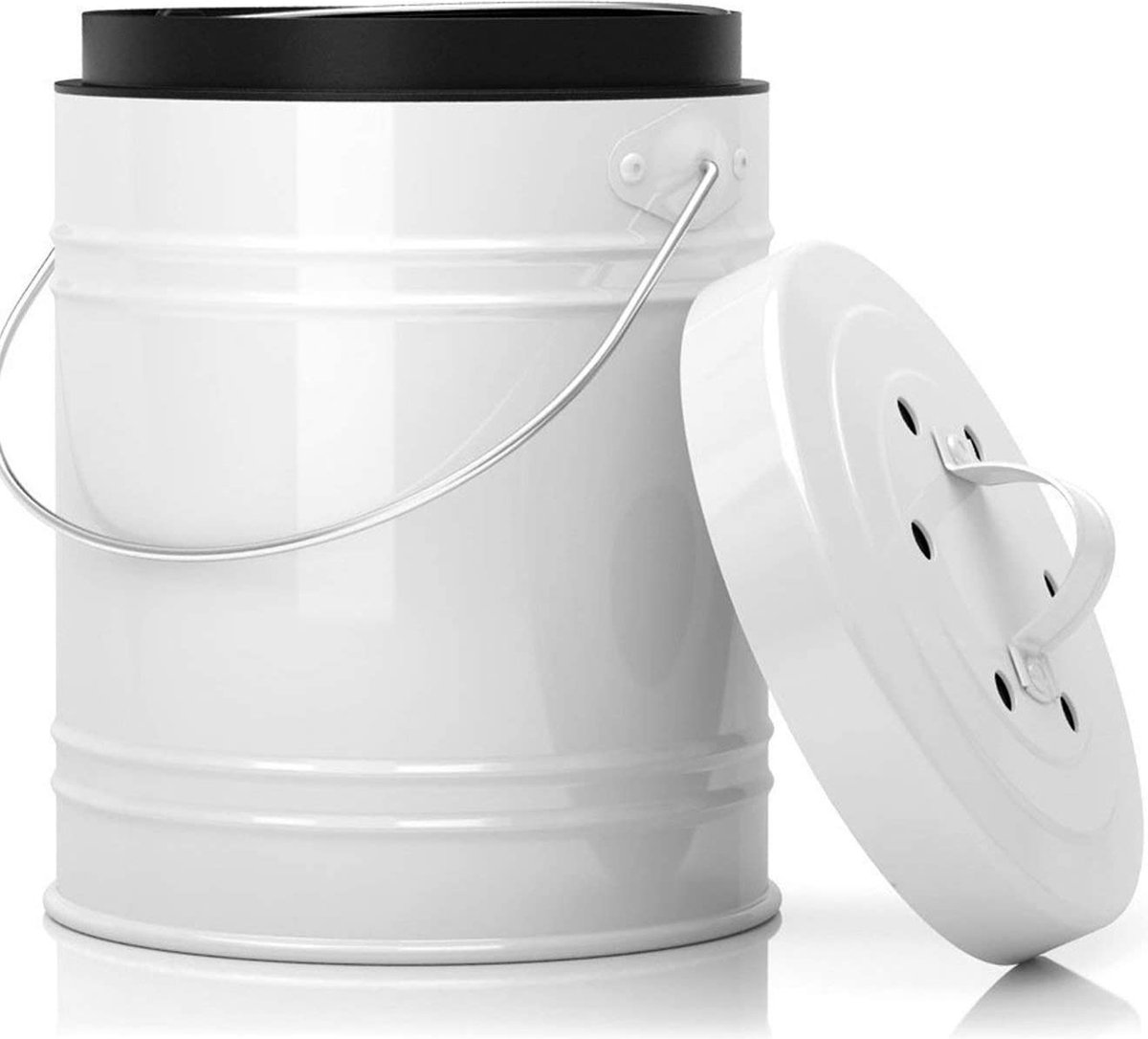 Biologische vuilnisemmer van de hoogste premium kwaliteit: wij houden van de klassieke biologische afvalcontainer voor keuken en eettafel met deksel in vintage retro look en de robuuste constructie van de bio-afvalcontainer. Onze geurdichte vuilnisemmer is gemaakt van hoogwaardig en roestvrij koolstofstaal, uiterst robuust en zal je betrouwbaar gedurende een zeer lange periode begeleiden. Je hoeft alleen het koolstoffilter in het deksel te plaatsen en het luchtdichte reservoir is klaar voor gebruik