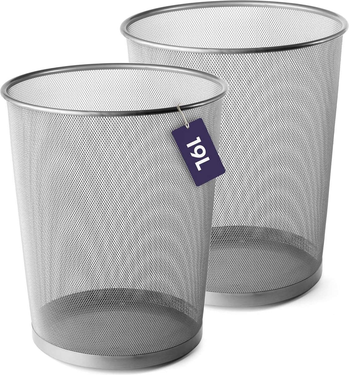 – Duurzame metalen vuilnisemmers: deze roestvrijstalen prullenbakken zijn mat en zijn uitstekend geschikt om elke kamer opgeruimd en netjes te houden. Dankzij het compacte formaat van de papieren emmers passen ze in elke hoek, waardoor ze ideaal zijn als vuilnisemmer op kantoor, in de slaap- en woonkamer, maar ook als prullenbak voor kinderen, omdat ze zeer weinig ruimte innemen. Door het krasbestendige en robuuste ontwerp zijn deze prullenbakken duurzaam en zien ze er lang verzorgd uit. Papieren afvalemmer van metalen gaasweefsel: met een hoogte van 34 cm en een diepte van 30 cm heeft deze afvalemmer de ideale afmetingen om als kantoorprullenbak, kindervuilnisemmer of ook als vuilnisemmer in het toilet, werkkamer, slaapkamer enz. te dienen. Het ontwerp van de prullenbak is rond en dun en beschikt over een stabiele metalen bodem, die de prullenbak verzwaart en hem beschermt tegen omvallen. Zo voorkom je rommel en houd je je kamers opgeruimd en schoon. Praktisch en onderhoudsvriendelijk: dankzij de kleine maasopeningen kan deze vuilnisemmer voor kinderkamer, tienerkamer enz. moeiteloos worden gereinigd, mocht hij door afval vuil worden. Voor het reinigen spoel je de vuilnisemmer zonder deksel gewoon af met een sopje en laat hem drogen. Zo kan de prullenbak voor papier altijd probleemloos opnieuw worden gebruikt, zonder te ruiken. Optimaal voor bedrijven: dankzij het elegante design van roestvrij staal zijn deze vuilnisemmers stijlvol en passen ze harmonieus in elke ruimte. Daarom zijn deze prullenbakken een populaire keuze voor bedrijven en klanten. De kantoorafvalemmer voor papierafval heeft bovendien een verchroomde afwerking, waardoor ze een elegante en professionele uitstraling bieden.